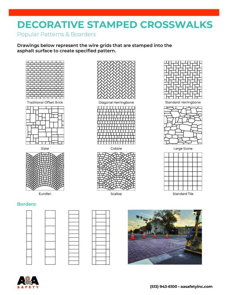 Stamped and interconnected decorative crosswalks offer an array of choices, including: